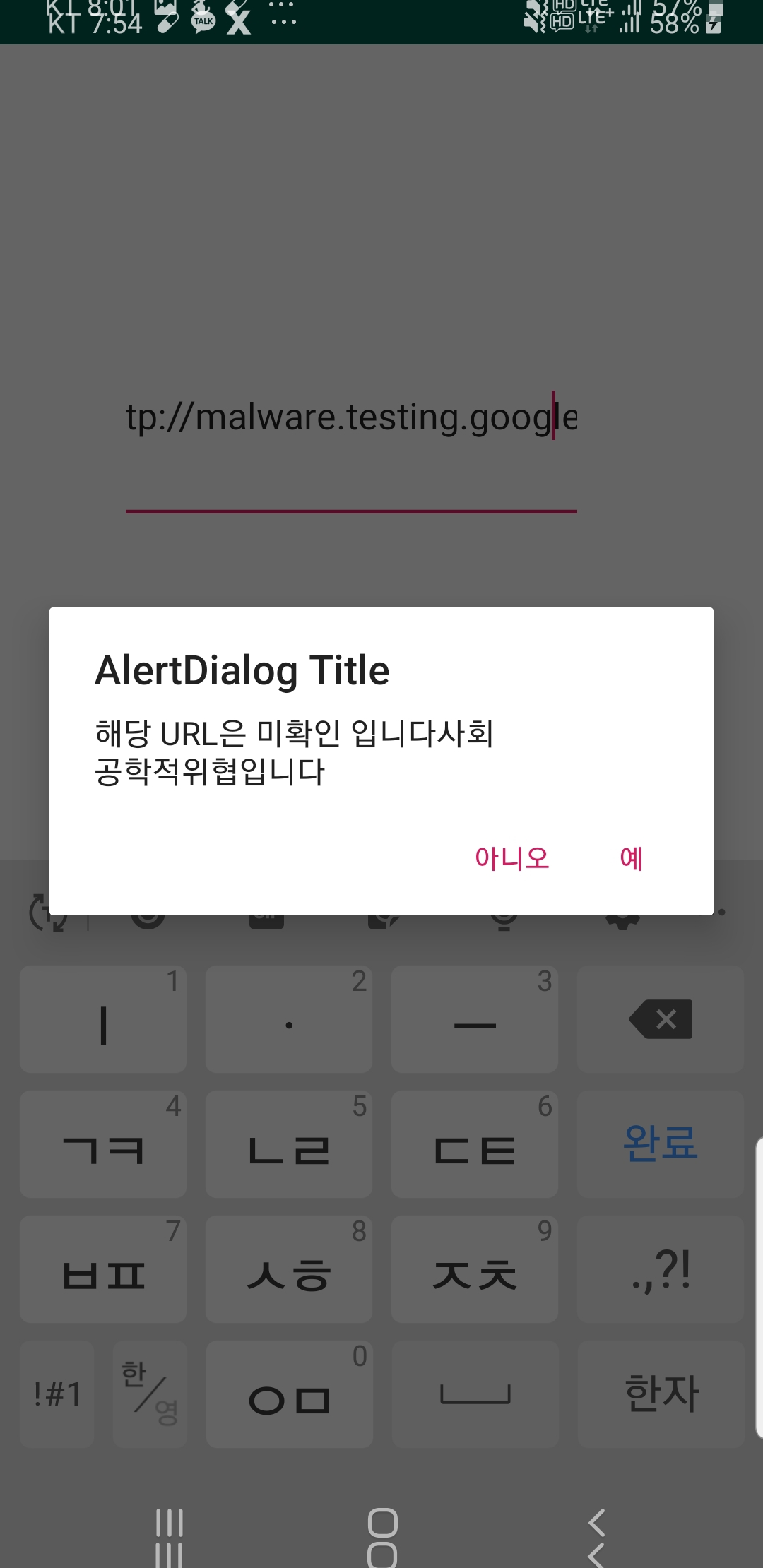 URL 조회 결과를 알렛 다이얼 로그 형태로 띄어주는 기능 구현
