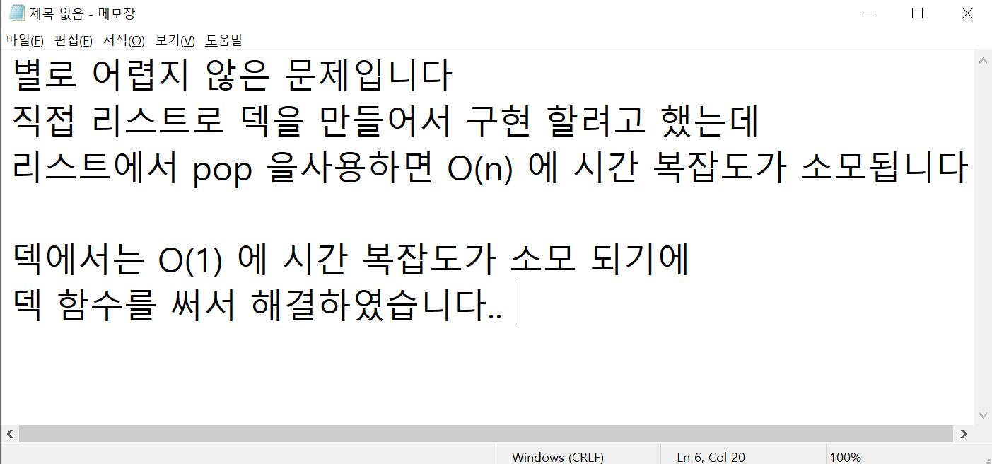 import sys from collections import deque a = int(sys.stdin.readline()) quelist = deque([i for i in range(1, a+1)]) for i in range(len(quelist) - 1): quelist.popleft() quelist.append(quelist[0]) quelist.popleft() print(quelist[0])반응형'Python > Python 알고리즘' 카테고리의 다른 글