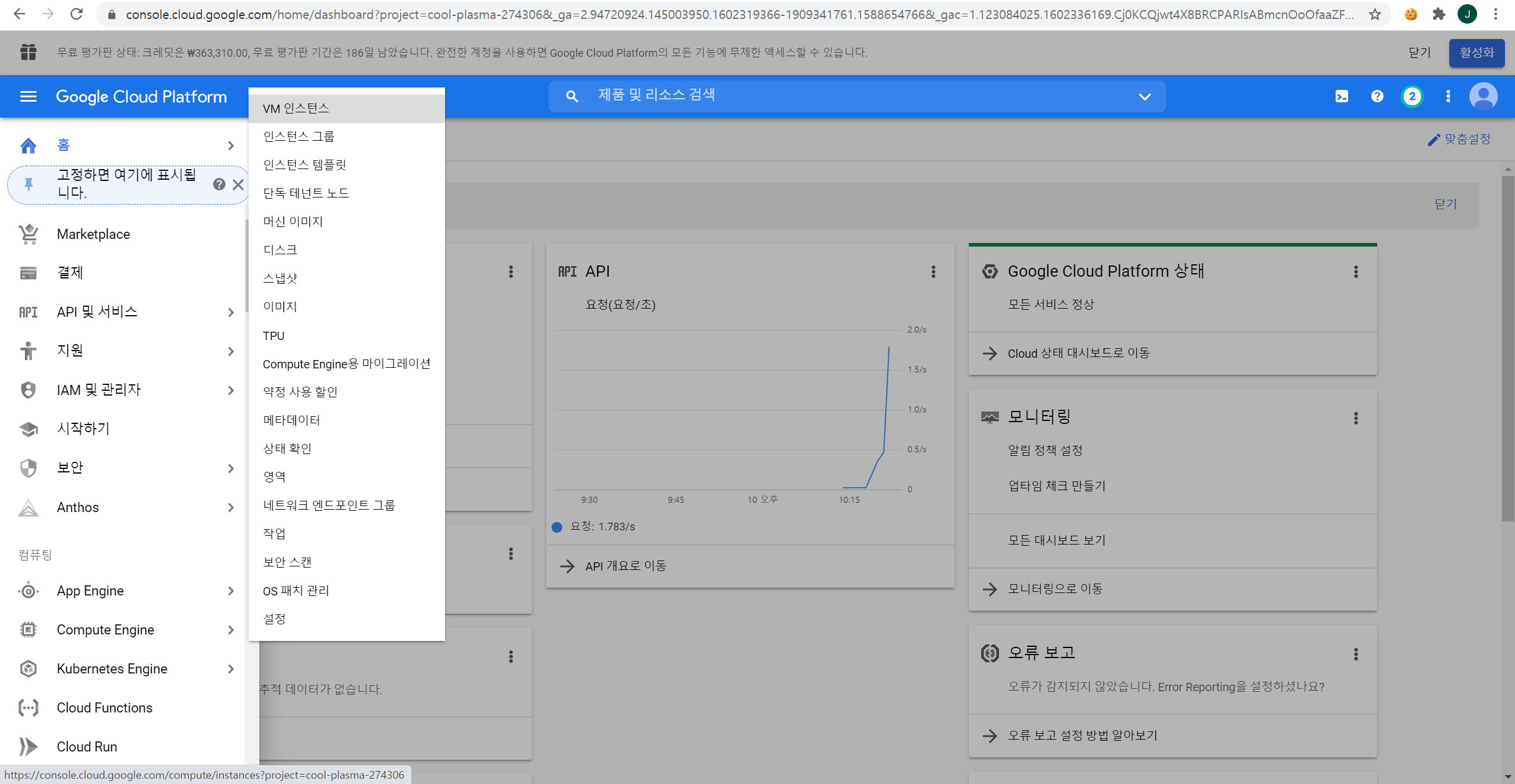 그 후 VM 인스턴스를 배너를 클릭해줍니다