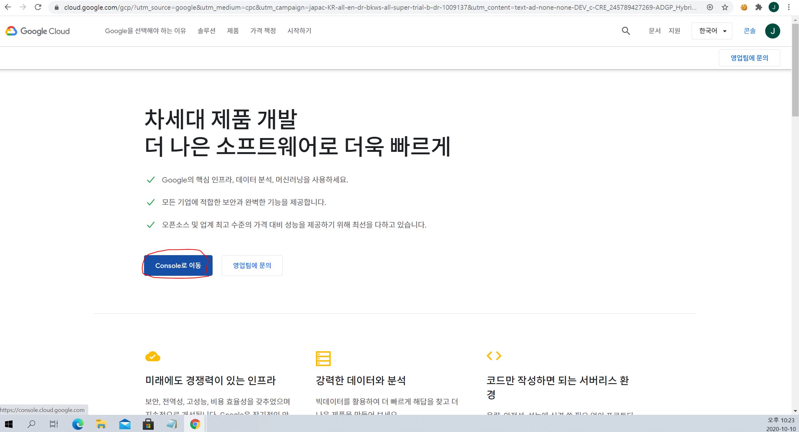 구글에 gcp 검색하시면 해당 홈페이지가 뜨고
