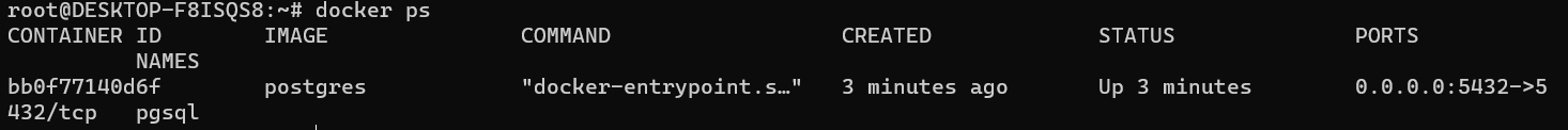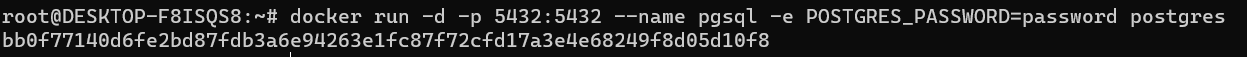 docker run -d -p 5432:5432 --name pgsql -e POSTGRES_PASSWORD=password postgres