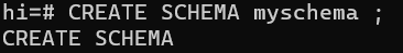 CREATE SCHEMA myschema;스키마를 만들어주는 명령어입니다