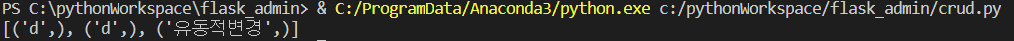 def readDB(self,schema,table,colum): sql = " SELECT {colum} from {schema}.{table}".format(colum=colum,schema=schema,table=table) try: self.cursor.execute(sql) result = self.cursor.fetchall() except Exception as e : result = (" read DB err",e) return resultㄹ데이터베이스 테이블에서 원하고자 하는 값을 read하는 로직입니다.