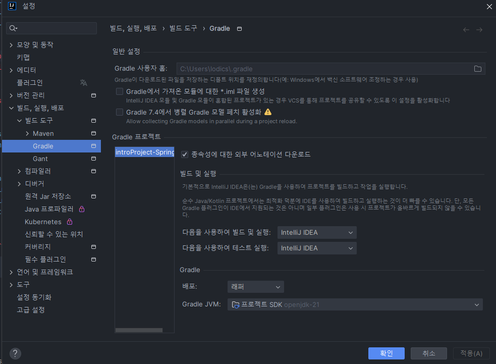 Gradle 빌드환경 설정.