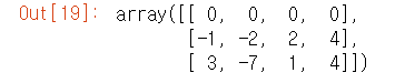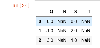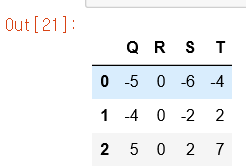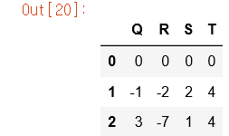 #Pandas 에서도 연산 규칙이 기본적으로 행방향으로 적용된다 . df = pd.DataFrame (A , columns=list('QRST')) df - df.iloc[0]