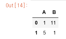 # DataFrame에서 인덱스 정렬 A = pd.DataFrame(rng.randint(0,20,(2,2)) , columns=list('AB')) A