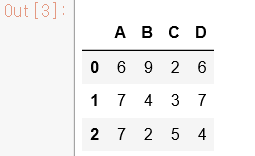 df = pd.DataFrame(rng.randint(0,10,(3,4)) , columns=['A','B','C','D']) df