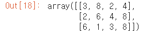 # DataFrame 과 Series 간의 연산할 때 인덱스와 열의 순서는 비슷하게 유지된다. # DataFrame 과 Serise 사이의 연산은 2차워s Numpy 배열과 1차원Numpy 배열 사이의 연산과 비슷하다. A = rng.randint(10 , size = (3,4)) A