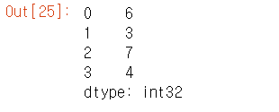# Pandas 는 몇가지 특성을 가지고 있다 . # 부정함수와 삼각함수 같은 단항 연산의 경우에는 유니버셜 함수가 결과물에 인덱스와 열 레이블을 보존하고 # 이항 연산의 경우 자동으로 인덱스를 보존한다 import pandas as pd import numpy as nprng = np.random.RandomState(42) ser = pd.Series(rng.randint(0,10,4)) ser