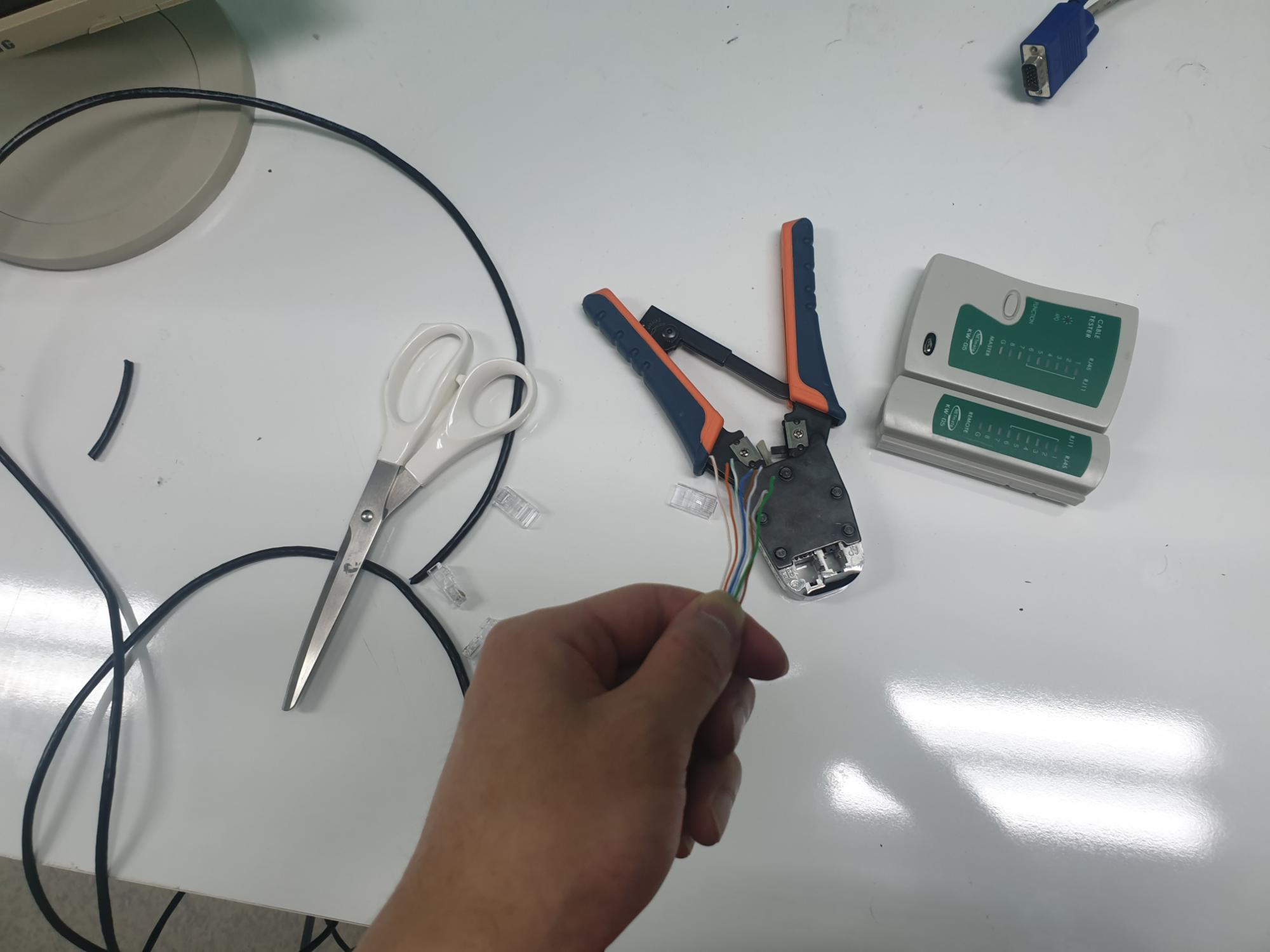 혹시 몰라서 기다리면서 랜선도 하나 찝어놨었는데 바닥에 하나가 굴러다녀서 그 랜선으로 진행했습니다.