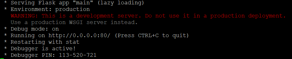 123456789101112131415@app.route("/")def index():return render_template('index.html')@app.route("/post", methods=['POST'])def post():value = request.form['test']s = SafeBrowsing(os.getenv('gsb_key'))r = s.lookup_urls(['{}'.format(value)])return rif __name__=="__main__":app.run(host="0.0.0.0", debug=True, port=80)cs sample - python 코드입니다.